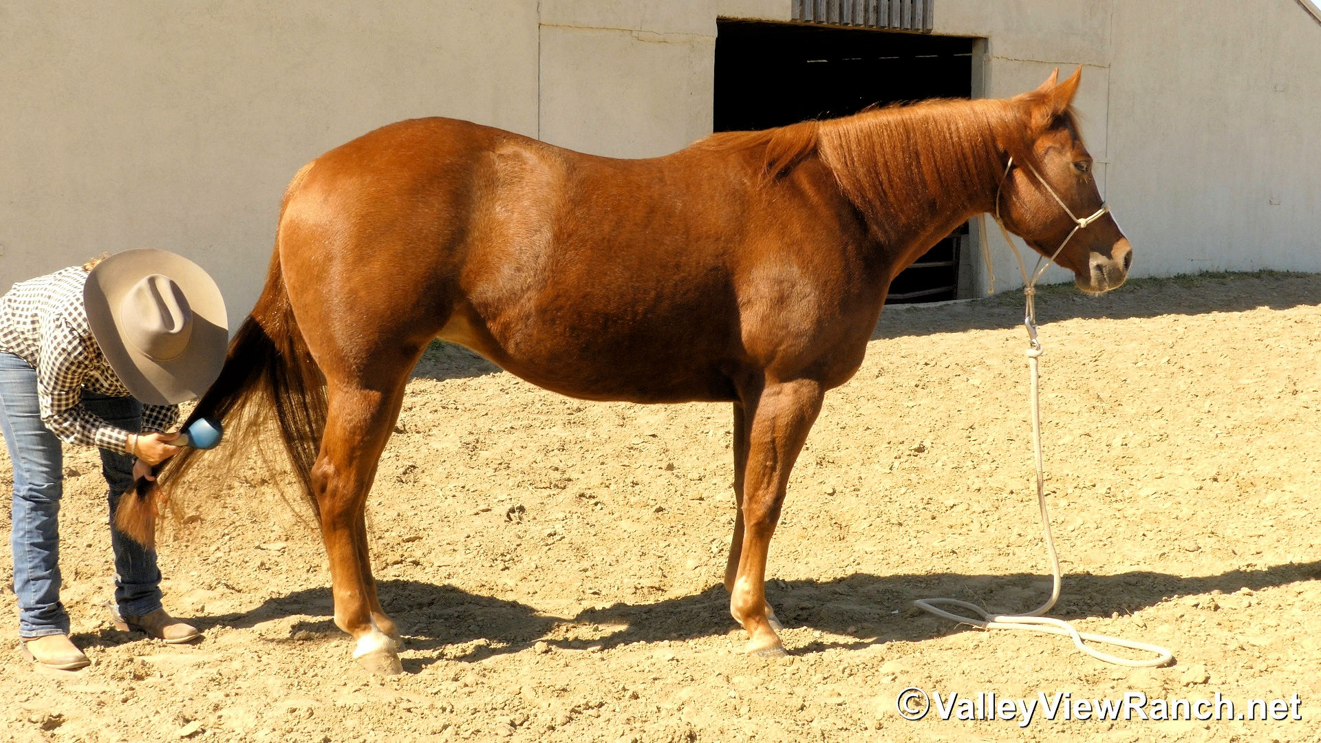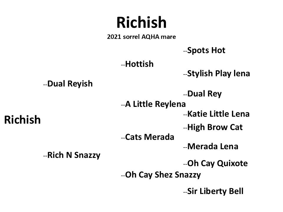"Nicky" is a well built, athletic mare with a big stop, turnaround and will swap leads well! She is an own Daughter of Dual Reyish by Hottish and out of a Cats Merada Mare. She is one of the sweetest horses in the barn and absolutely loves attention! She has really comfortable gaits and is smooth and easy on a cow. She rides outside well alone or in a group. Nicky has excellent ground manners, easy to catch, bathe, tack up, stands for mount and dismount, ties well, hauls well, and super in new places and situations!