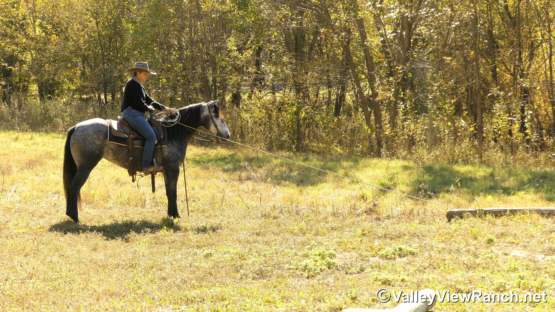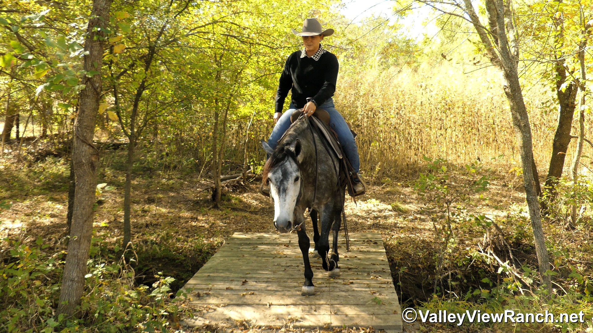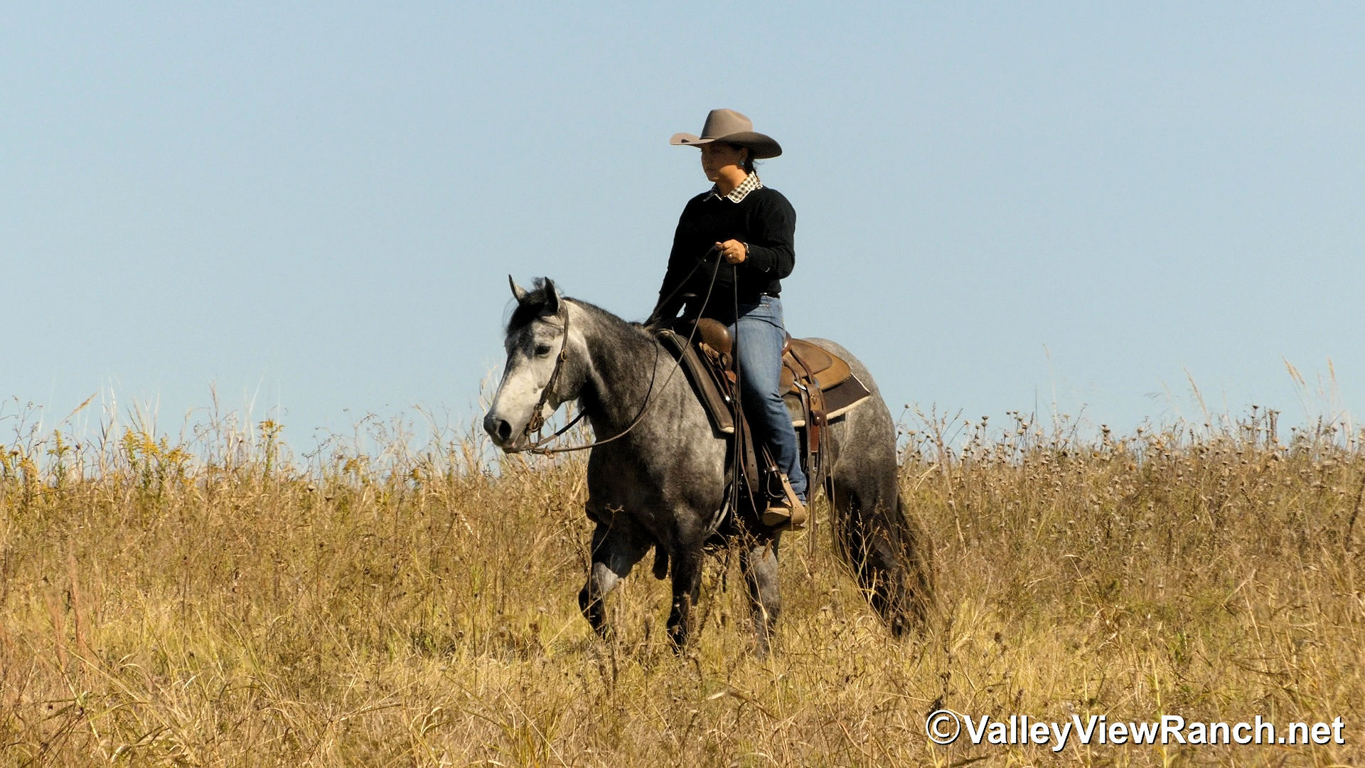 "Roxy" is a classy mare with a soft eye, big hip, lots of bone and great hard feet! She has had lots of outside miles already! Roxy has been used to gather, sort and brand calves. She has a great stop, nice walk, trot, canter both ways, side passes, backs up easily, and works a gate. She is super uncomplicated and tries hard to please. She has an easy to sit, comfortable jog and a gentle rocking lope. She is confident out on the trails alone or in a group. She has been ridden in rough country and handles the terrain well. She crosses water and all the obstacles well. Roxy has great ground manners, easy to catch, lead, load, haul, groom, pick feet, bathe, saddle, bridle, she stands tied, and quiet for the vet and the farrier.