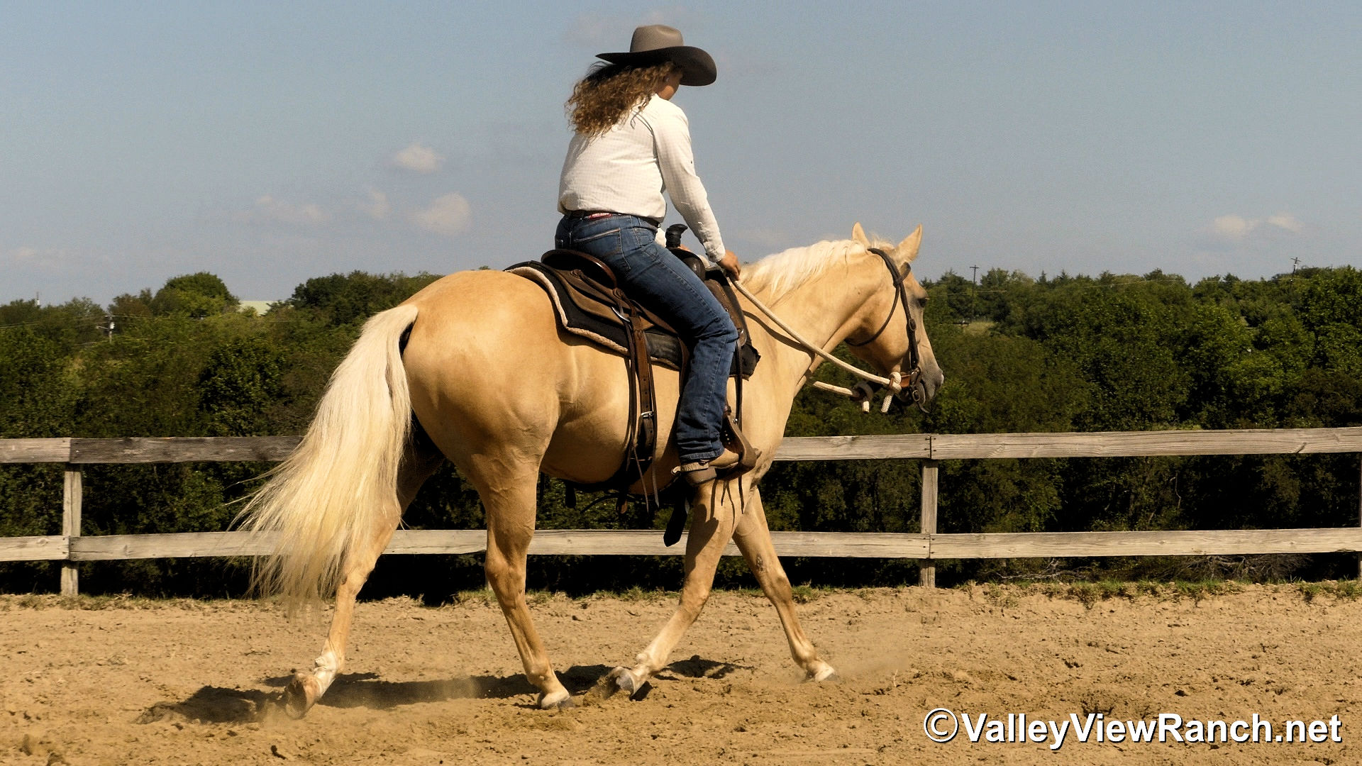 "Sister" is a golden Palomino mare with a stunning white mane and tail! She has a great stop, nice walk, trot, canter both ways and backs up soft. She is super uncomplicated! Sister has been roped off of and started tracking the dummy. She would make a great playday mount, barrel horse, sorter and team penner, breakaway or heel horse. She has an exceptionally sweet, loving personality and enjoys her time with her person! She loves to be pet on! She is confident out on the trails alone or in a group and is great in town as well. Sister does well on all the obstacles, has great ground manners, is easy to catch, lead, load, haul, groom, pick feet, bathe, saddle, bridle, stands tied, and quiet for the vet and the farrier!
