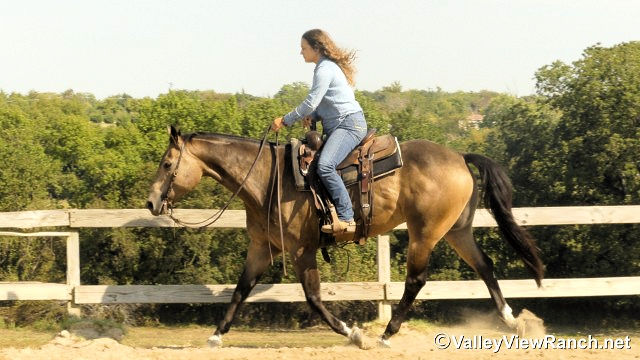 Barbie is an AQHA Buckskin mare with a great pedigree! She is fun to ride inside and outside the arena! She's easy to get along with and she has a brave and curious personality and is excellent on the trail, in town and around cattle. She is laid back, enjoys people and tries hard to please. She has a soft face and moves out and off your legs well! She will move her hind end and forehand around and give you her ribs. She would make a great ranch versatility mount, sorter, ranch or trail horse. Barbie is a sweet, in your pocket type, but is still very respectful on the ground and loves to be loved on. She is easy to catch, does well stalled or pastured in a group, and trailers well. She has excellent ground manners and is great with her feet. Barbie is sure to find a place in your barn and heart!