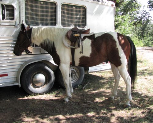 the vet and the farrier, self-loads, hauls well. Can stay in the